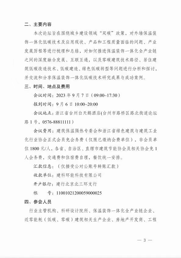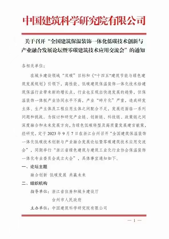 2023年9月7日在浙江臺州召開的 “ 全國建筑保溫裝飾一體化發(fā)展論壇暨技術(shù)應(yīng)用交流會 ”